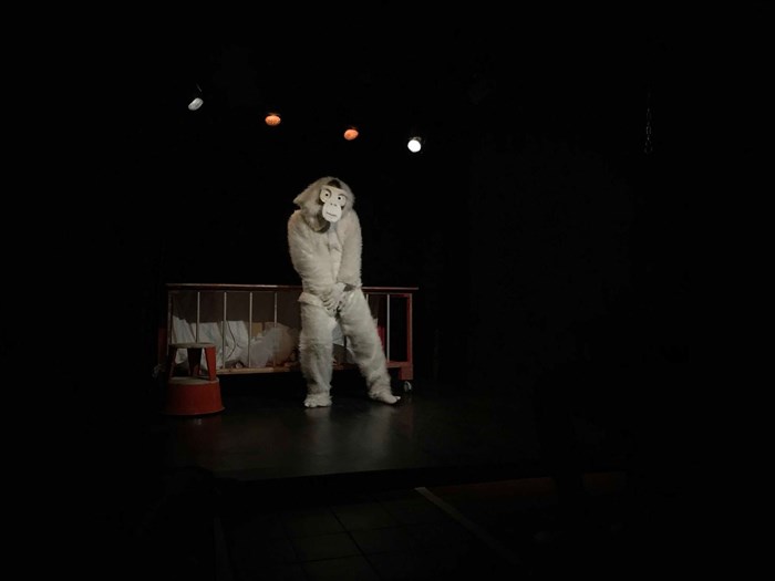D'abord abasourdi par la question, l'artiste retrousse ses manches et se jouant de tous les artifices de la scène, va tenter de conter sa métamorphose depuis sa capture par le Cirque Hagenbeck.