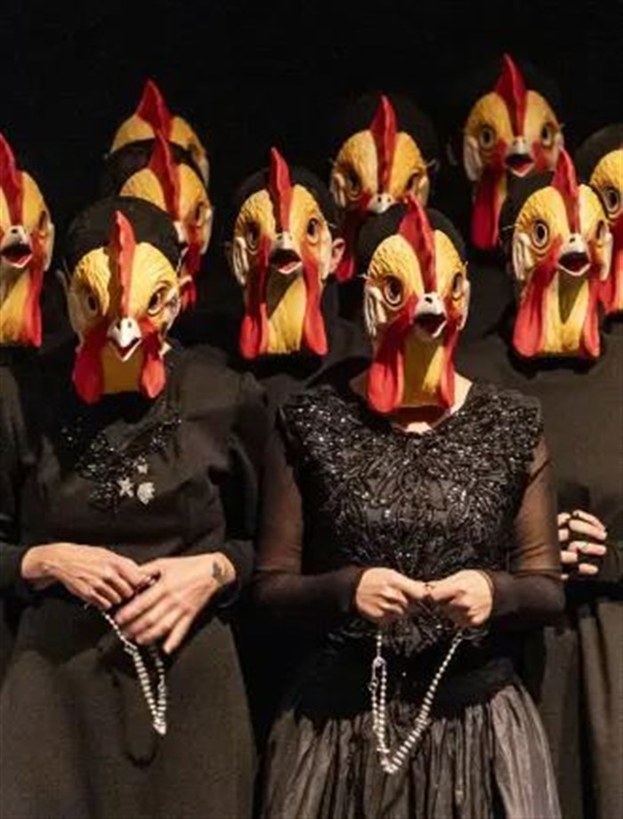 Après La Scortecata et Pupo di zucchero accueillis au printemps 2023 à La Colline, Emma Dante clôt sa trilogie inspirée du Conte des contes de l'écrivain napolitain du XVIe siècle Giambattista Basile avec une satire contemporaine universelle. Cette troisième fable est celle d'un roi qui s'essuie le postérieur avec une poule aux plumes douces et soyeuses qu'il croit morte. Mais le gallinacé, bel et bien vivant, s'agrippe à l'homme puis s'installe dans ses entrailles lui faisant pondre un oeuf d'or par jour... une agonie pour le souverain épuisé, une aubaine pour la famille royale cupide et la cour égoïste !