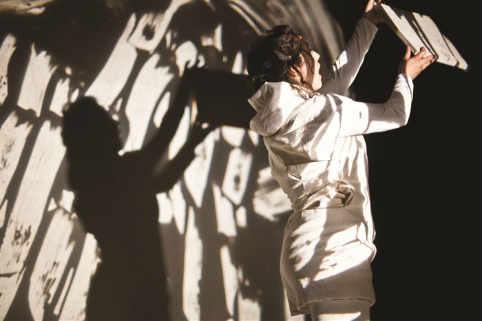 La lumière projetée, le dessin en direct, la voix, la langue qui se cherche, qui trébuche, qui se trompe, qui prend du plaisir à parler à chanter.