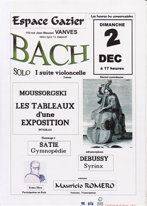 Carte blanche à Mauricio Romero (Fantasias pour contrebasse solo) Oeuvres de Bach 1 suite violoncelle, Satie, Debussy, Moussorgsky