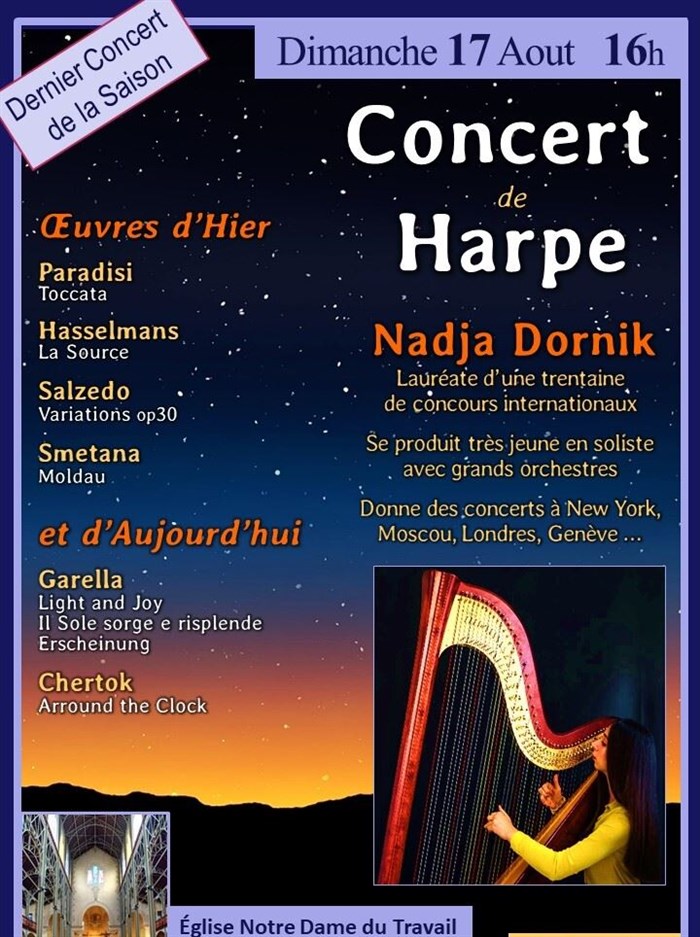 Tu veux savoir ce qu’ont pensé les spectateurs et la presse de cet événement : Récital de harpe classique - Eglise Notre-Dame du Travail ? Découvre leurs avis éclairés et prépare-toi à vivre un moment d’exception à ton tour en réservant tes places !