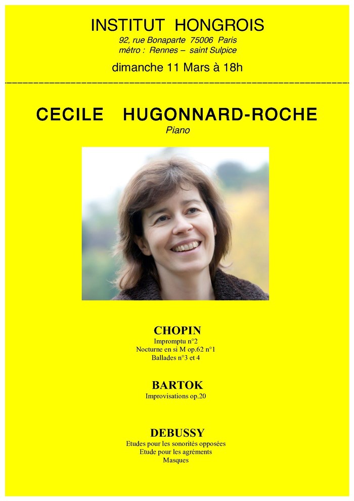 Cécile Hugonnard Roche est professeur au Conservatoire à Rayonnement Régional de Saint-Maur et au Conservatoire National Supérieur de Musique de Paris,