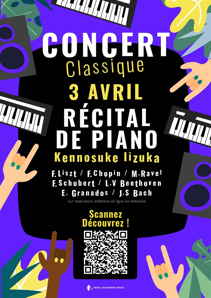 L'association Amabile – Enseignement Musical vous invite à un récital de piano classique interprété par Kennosuke Iizuka, professeur de piano de l'association.