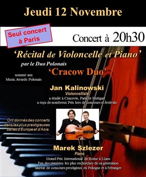 Récital de Violoncelle et Piano : Chopin, Schumann, Panufnik, Piazzolla, Debussy, Tansman, toutes les séances