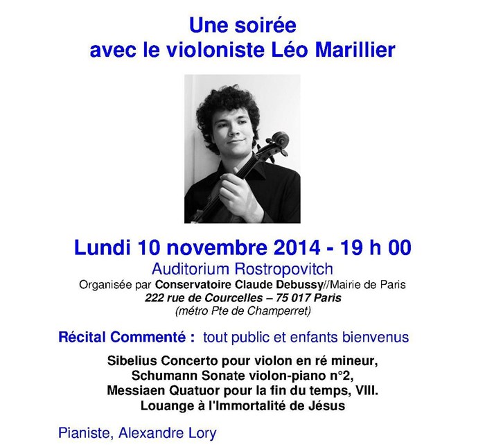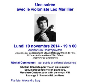 Messiaen, Quatuor pour la fin du temps, VIII. Louange à l'Immortalité de Jésus Sibelius, Concerto pour violon en ré mineur op. 47, 1er et 2ème mouvements