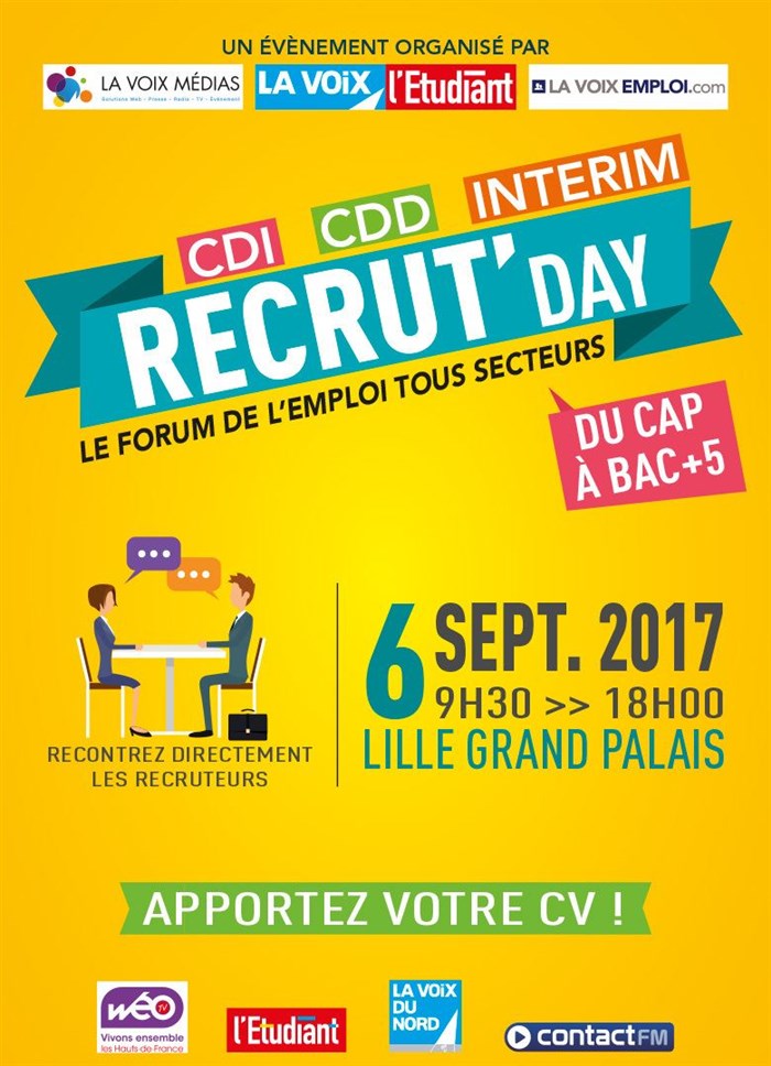Le Forum Recrut'Day est un forum emploi ciblé Hauts-de-France, pour les candidats du CAP au BAC +5.