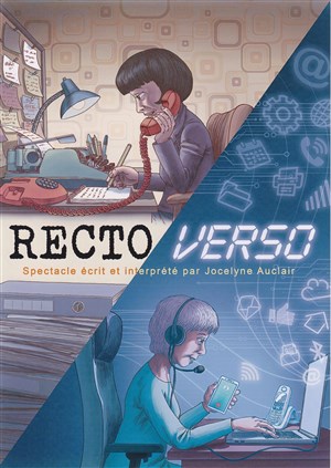 RECTO/VERSO est un spectacle très divertissant car traité avec humour et finesse sur le monde du travail dans l'administration et le parallèle et l'évolution entre la "machine à écrire" et l'ordinateur sont bien décrite et sentis. Ce monde du travail a terriblement évolué mais on constate que les rapports humains restent toujours identiques avec leur petite bassesse entre Chefs et employé. joué avec beaucoup de sensibilité par Jocelyne AUCLAIR , nous avons passé une très agréable soirée. Spectacle recommandé à TOUS