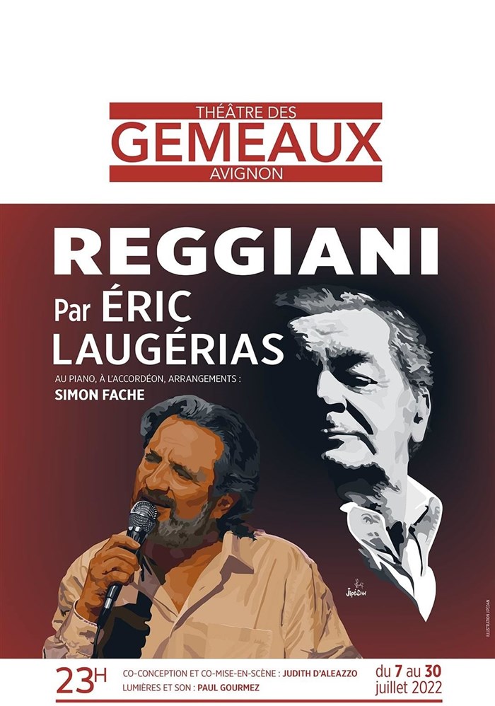 Si vous avez la chance d' être à Avignon pour le festival, courez y voir Eric Laugerias interprétant Reggiani, c'est absolument fabuleux et nous n'avons vu que la face À de ce spectacle, c'est une véritable frustration de ne pas avoir pu voir la face B, interprétation magistrale et non imitation Bravo à vous M.Laugerias et aussi au pianiste-accordéoniste qui vous accompagne. Beaucoup d'emotion et de nostalgie.