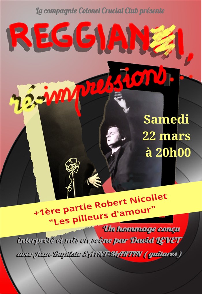"Reggiani, ré-impressions" est un hommage à Serge Reggiani, disparu en 2004, évoquant certains passage de sa vie, au travers de textes, de poèmes mais surtout de ses chansons. Pourquoi "ré-impressions" ? Parce que l'ensemble voix-guitares apporte une couleur différente des orchestrations originales, tout en restant fidèle à l'esprit de ces merveilleuses chansons. Un spectacle tout public pour (re)découvrir l'univers de celui qui a illuminé la chanson française à texte pendant 40 ans.