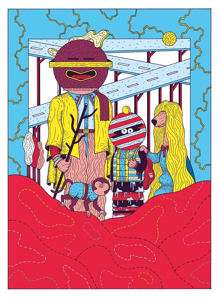 Nous suivons une drôle de troupe, qui croise de nombreux personnages masqués et costumés aux allures de poupées étranges.
