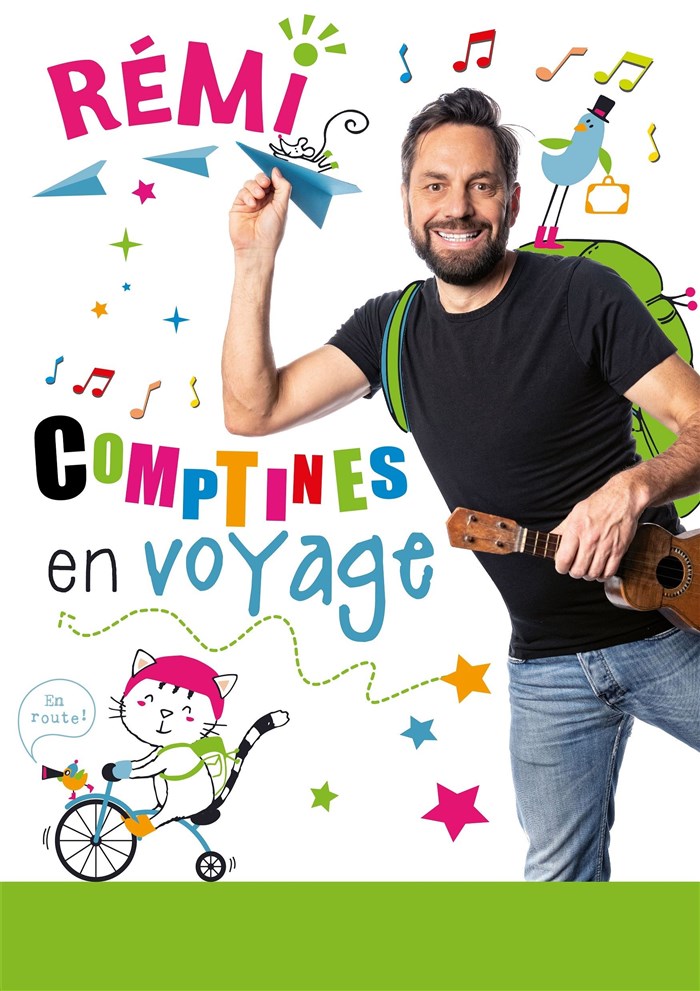 Dans ce nouveau spectacle, Rémi vous invite à un tour du monde musical. Partez en voyage avec lui pour redécouvrir nos plus belles comptines et chansons à mimer : retrouvez le grand cerf, les petits poissons, les crocodiles... et plein de nouveautés lors d'escales en Afrique, chez les cow-boys, en Russie, dans le monde celte...