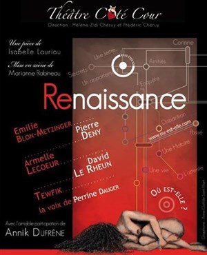 Renaissance est un texte publié aux éditions Art&Comédie depuis Février 2008. C'est une comédie dramatique mêlant humour et suspens puisque nous suivons une enquête policière dès l'annonce de la disparition de la femme. Les personnages, tous des proches de la disparue vont, progressivement, montrer leur vrai visage grâce ou à cause d'un enquêteur plutôt atypique.