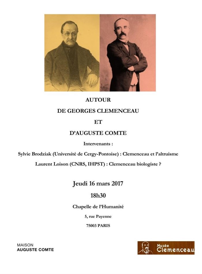 Le "Tigre" découvre le philosophe positiviste dans sa jeunesse et c'est notamment par l'intermédiaire de Charles Robin, lui-même positiviste, que se sont établis les liens les plus forts avec Comte. Médecin, Robin a été le directeur de thèse de Clemenceau et a grandement influencé sa pensée biologique. C'est cette pensée que tentera d'interroger Laurent Loison dans son intervention.