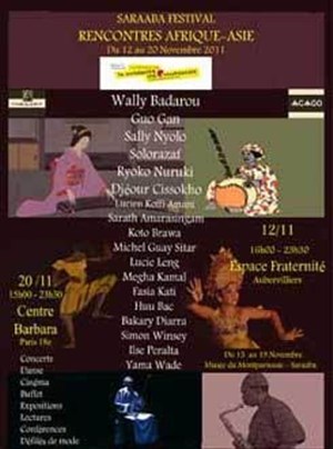 Le Festival Saraaba - Rencontres Afrique-Asie, c'est à la fois une manifestation pluridisciplinaire avec des conférences sur les relations culturelles entre l'Afrique et l'Asie, des défilés de mode autour du batik, des créations chorégraphiques Hip Hop et de danses contemporaines (Bali, Inde, Sri Lanka, Algérie, Côte d'Ivoire), des lectures des oeuvres d'auteurs africains et asiatiques, des projections de films (Bénin, Sénégal, Corée,RDC, France), des expositions historiques et artistiques, des concerts présentant les créations musicales de 12 artistes (Chine, Japon, Inde, Burkina Faso, Madagascar, Bénin, Cameroun, Sénégal, Cambodge) sous la direction artistique de Wally Badarou, directeur du défilé du bicentenaire de la Révolution de Jean-Paul Goude.