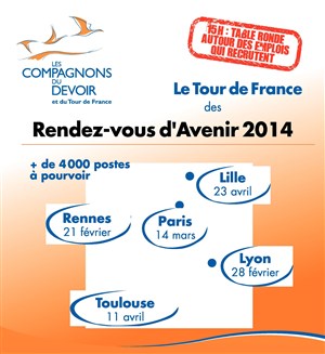 De février à avril 2014, les Compagnons du Devoir et du Tour de France lancent un nouvel événement : le Rendez-vous d'Avenir. Organisé dans 5 villes de France (Rennes, Lyon, Paris, Toulouse et Lille), cet évènement met en relation les jeunes avec des entreprises qui embauchent tout en leur proposant une formation adaptée.