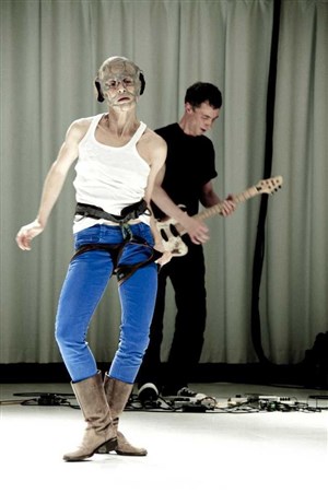 Travaillant à la frontière des genres, Requiem fonctionne comme un agencement de matériaux en tension : des cordes vocales chantant, scandant le texte, aux cordes de la guitare frottées, frappées ou effleurées ; des muscles tenant les membres aux câbles soutenant le corps comme une offrande ou un supplicié – chaque élément semble prêt à basculer à chaque instant. Heurtant la scène pour se forcer un passage, les deux interprètes brouillent les pistes et les rôles ; tour à tour récitant et passeur, silhouette inanimée ou officiant d'une étrange cérémonie, ils incarnent la dimension double du passage : corps qui traverse et fait traverser. En écho au texte de Casey, la musique de Marc Sens – pleine de fracas, de grincement métalliques et d'élans mélodiques – se fait orchestre et percussion, fouet qui zèbre le corps ou murmure qui le caresse. A force de tirer, de tordre la chair, des images émergent – celle du gisant, de l'étreinte – comme les figures doubles d'Eros et Thanatos qui chantent ensemble. Forever.