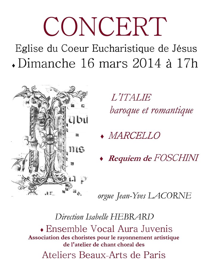 Au programme également : un très beau psaume pour choeur et orgue de Benedetto Marcello et un concerto de son frère Allessandro transcrit pour orgue par J.S. Bach.