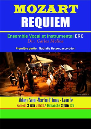 Véritable invitation au voyage, à la quête du plus profond de soi, aux atmosphères graves se rapportant à l'au-delà, cette messe est une prière pour les âmes des défunts. Le Requiem nous laisse une empreinte toute particulière à chaque écoute. L'ERC se devait donc de l'ajouter à son répertoire. Ainsi le Requiem de Mozart sonnera-t-il pour vous à l'Abbaye de Saint-Martin d'Ainay, ce haut lieu chargé d'histoire dans notre ville des Lumières.
