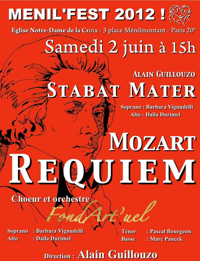 L’événement Requiem de Mozart, Stabat Mater d'Alain Guillouzo - Menil'fest - Printemps de Ménilmontant de type Concert Lyrique, organisé ici :