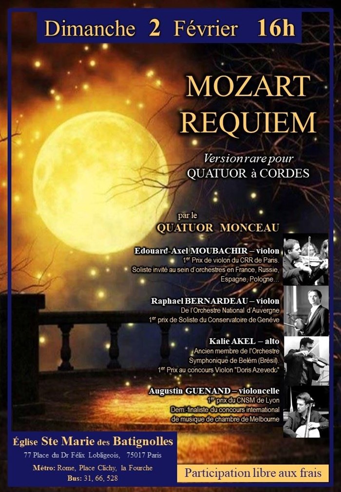 Requiem de Mozart version Quatuor à Cordes, toutes les séances