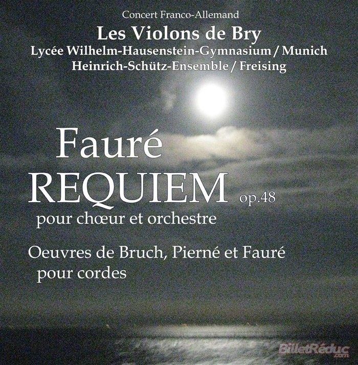 Concert Franco-Allemand organisé par l'association des Violons de Bry. Le Requiem op.48 de Fauré et des oeuvres de Bruch, Pierné et Fauré pour cordes seront interprétées par les jeunes musiciens des Violons de Bry et les musiciens et choristes du Lycée Wilhelm-Hausenstein-Gymnasium de Munich et Heinrich-Schütz-Ensemble de Freising