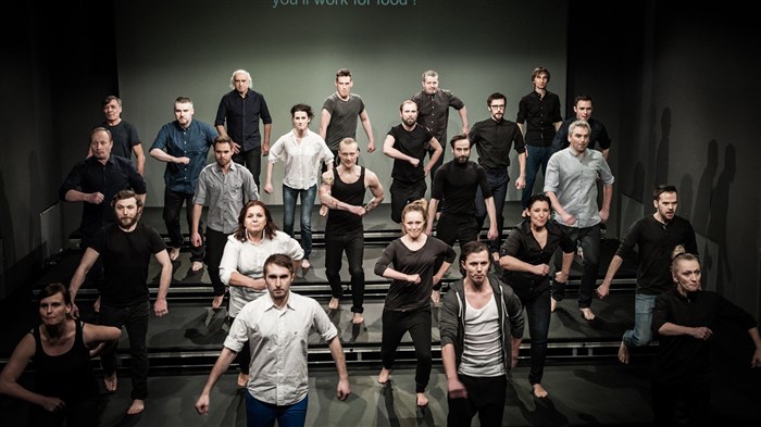 Elle se saisit de ce potentiel révolutionnaire pour dénoncer les excès du système libéral, dans une position critique à la fois radicale et poétique. Le ballet mécanique des corps transforme un choeur de trente personnes en machine humaine d'où s'élève le chant pur de la condition ouvrière.