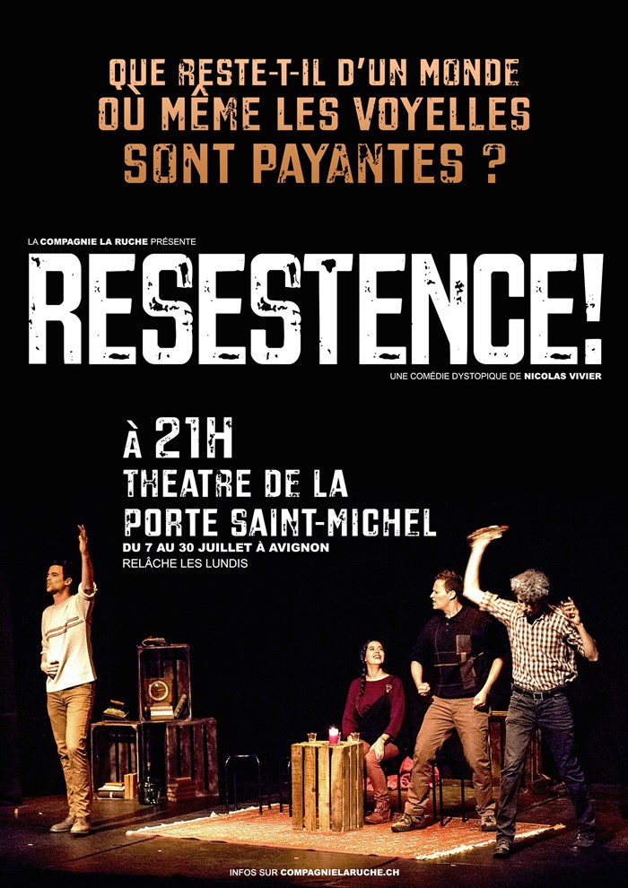 "J'ai beaucoup ri. Cette histoire d'avoir mis les voyelles dans le domaine privé nous amène à réfléchir beaucoup à ce que va être la société de demain. La Compagnie la Ruche présente donc Resestence! Une ruche, ça pique un peu, mais ça fait un miel qu'on a envie de partager."