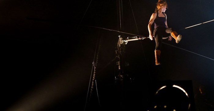 Pièce pour fil instable, musique viscérale, techniciens engagés et filambule bien perchée.