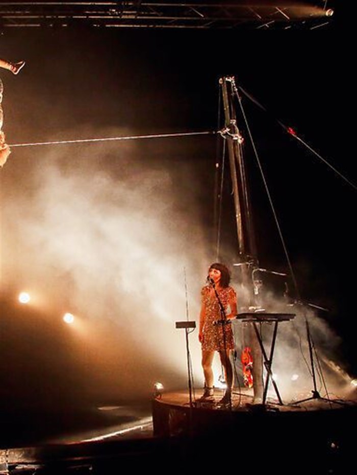 Au sol, une chanteuse s'accroche au souffle de cette acrobate et mène aussi son combat. Elle entonne Résiste, le tube de France Gall d'une voix grave, accompagné d'un ukulélé. Ensemble, elles s'arment de courage, bravent l'apesanteur et se risquent sans dessus-dessous vers des chemins insoupçonnés.