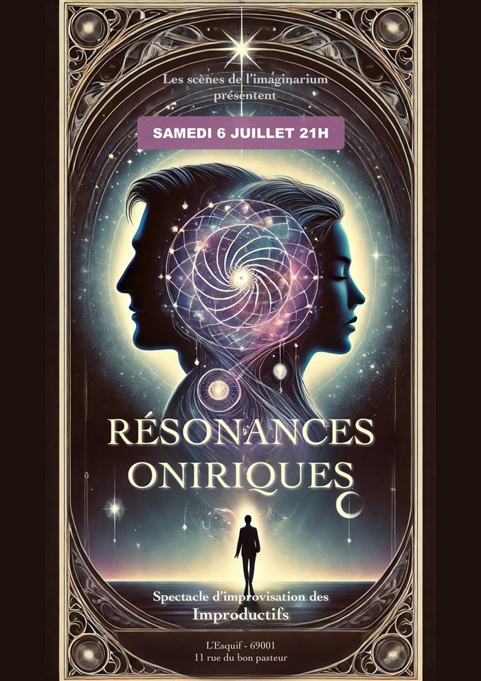 Plongez dans l'univers fascinant de 'Résonances Oniriques', un spectacle d'improvisation unique où deux personnages explorent leurs vies parallèles à travers des moments de déjà-vu.