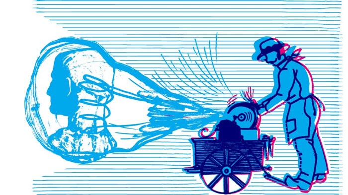 physique sont au service de l'imaginaire, où la science devient support du rêve par la grâce de curieuses inventions optiques : un Miroir liquide, le Cyclope... Les Rémouleurs sont les ingénieurs allumés de machines à rêves, les inventeurs d'un univers scénique où Jules Verne s'acoquinerait avec Jérôme Bosch. Les Suites 4 & 5 pour violoncelle de Jean-Sébastien Bach entrent également en jeu, tel un motif qui s'additionne aux