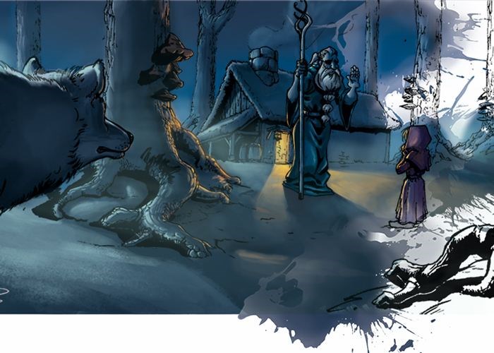 Une chaumière dans une paisible clairière. Lieu idyllique de contes de fée. Un vieil homme étrange....