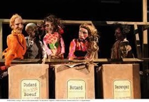 Avec son humour féroce et sa poésie absurde, la pièce de Ionesco questionne toujours aussi virulemment les mécanismes de l'uniformisation de la pensée. Et n'est-ce pas justement le propre de la marionnette que de mettre à nu ces perfides engrenages, de montrer les ficelles en bouleversant les échelles, les rapports entre réalisme et fantastique ?