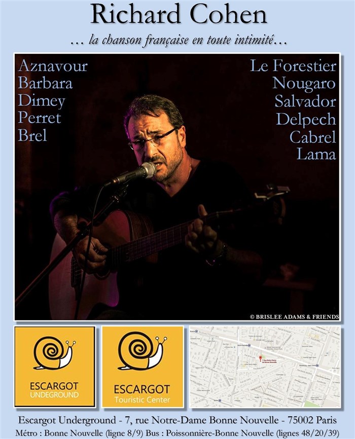 Richard Cohen interprète un répertoire français, en arrangement intimiste acoustique guitare/voix (Aznavour, Barbara, Nougaro, Le Forestier, Dimey,..)