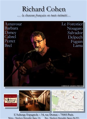 Je viens de voir Richard Cohen au Pandora ce soir en suivant juste mon intuition qui ne m'a pas du tout faussé ! Un répertoire délicieux, divinement interprété , Richard nous transporte à travers les mots, la guitare et son interprétation dans un univers magique.
