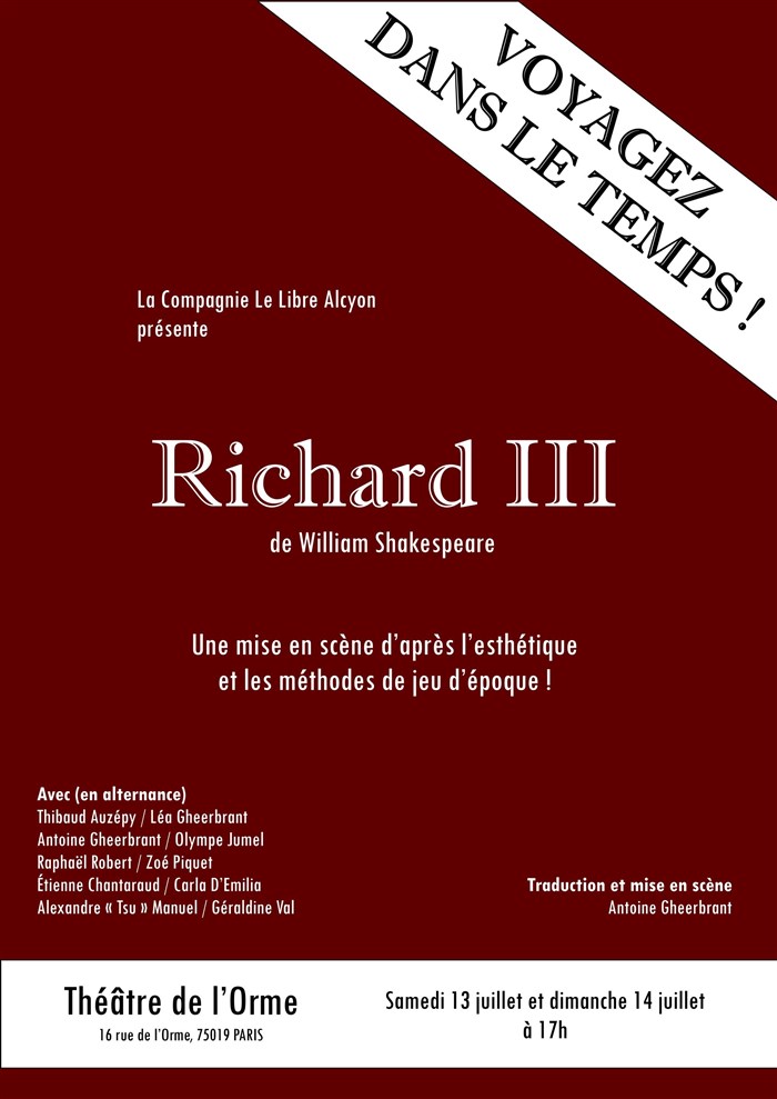 L’événement Richard III de type Théâtre dramatique, organisé ici :