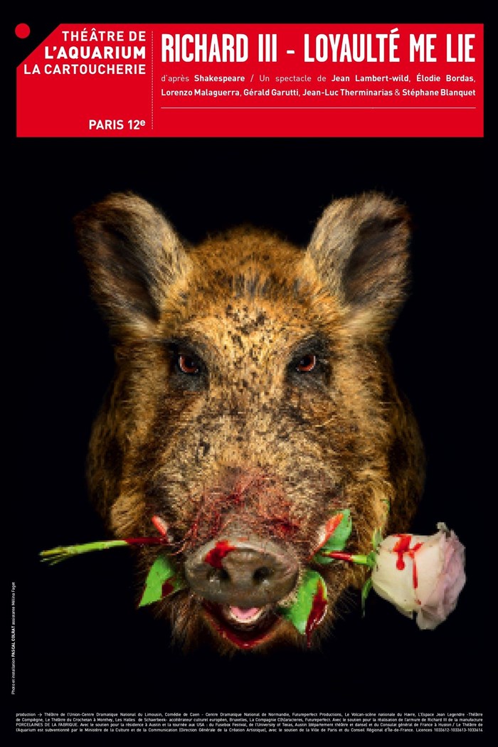 Jean Lambert-wild et Élodie Bordas s'emparent de ce jeu de massacre (au sens littéral !), transposé dans l'univers délirant d'une fête foraine. Lui, en pyjama rayé et fraise au cou, incarne le tyran avec l'humour ravageur d'un Joker sans limites ; elle joue à elle seule toutes les reines et tous les complices de Richard III entraînés dans cette furieuse course vers l'abîme.