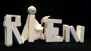 Rien montre un personnage, qui découvre sa capacité à être humain, et dont on peut rire car les ressemblances sont troublantes... Au milieu d'un plateau noir, entourée de cubes, supports de notre imagination, une marionnette blanche traverse et découvre ses émotions.