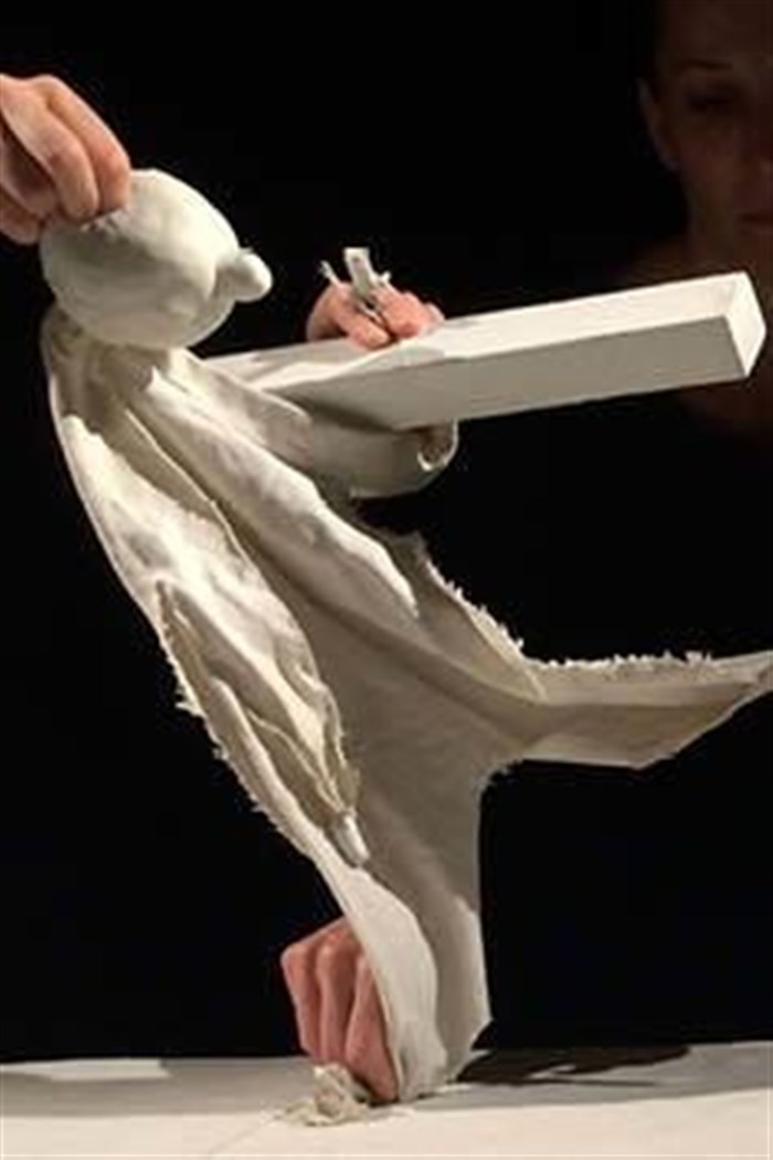 Une grande table blanche au milieu d'un plateau noir, comme un terrain de jeu suspendu dans l'air, sur laquelle vient se mouvoir une marionnette. Entouré de cubes, supports de notre imagination, le personnage traverse découvertes et émotions. Possession, autorité, instinct de propriété, spiritualité... Rien explore des archétypes qui sont en l'Homme et le constituent depuis la nuit des temps.