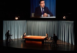La scène du théâtre est transformée en plateau télé dont les images, montées en direct, sont projetées sur un écran au-dessus des acteurs. Coups bas et coups d'éclat, traits d'esprit, changements de cap, langage des corps... Le théâtre n'est jamais très loin ! Invités à réinterpréter une suite d'extraits construite à partir d'archives des débats de 1974 à 2017, Emmanuelle Lafon et Laurent Poitrenaux — deux as de la joute verbale — font revivre un condensé explosif de 43 ans d'histoire médiatique. Avec talent, ils vous jettent dans la dramaturgie sous tension du débat politique, entre propos maîtrisés, punchlines, gestes qui trahissent et émotions qui surgissent.