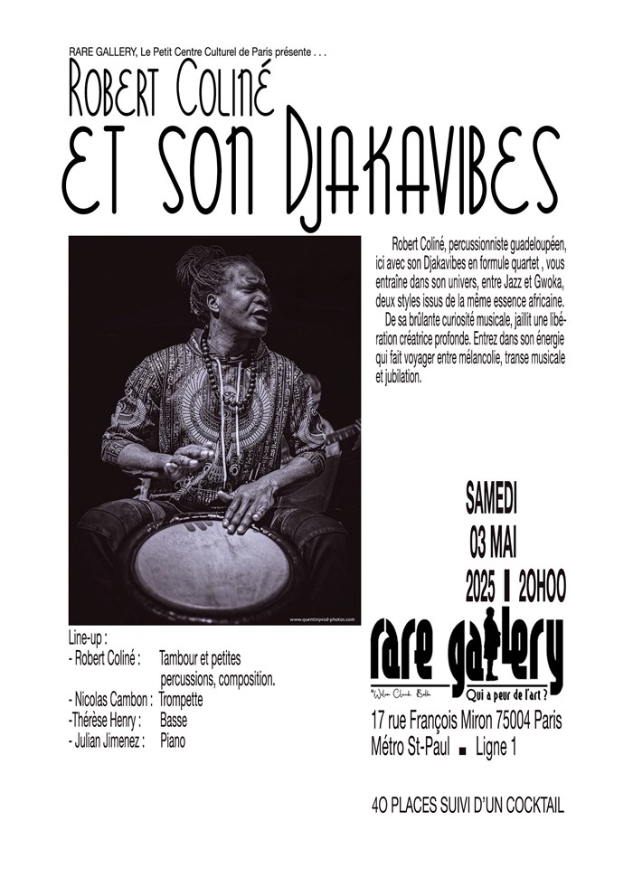Robert Coliné, percussionniste guadeloupéen avec son Djakavibes quartet, vous entraîne entre Jazz & Gwoka, 2 styles issus de la même essence afro.