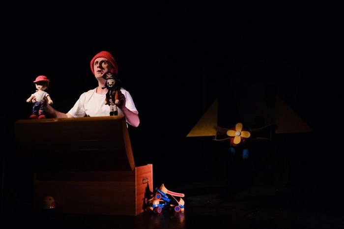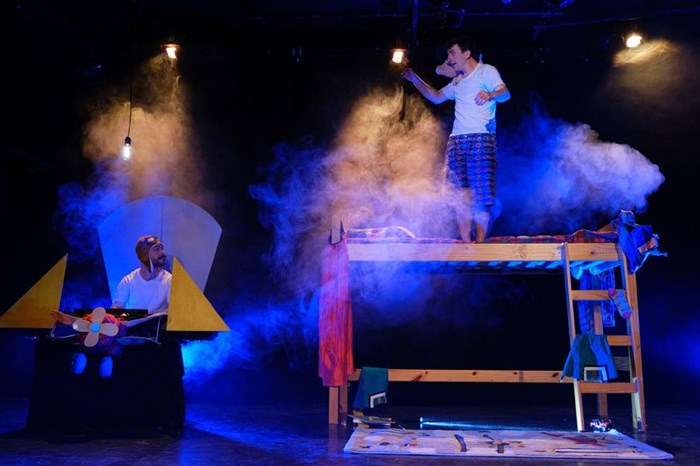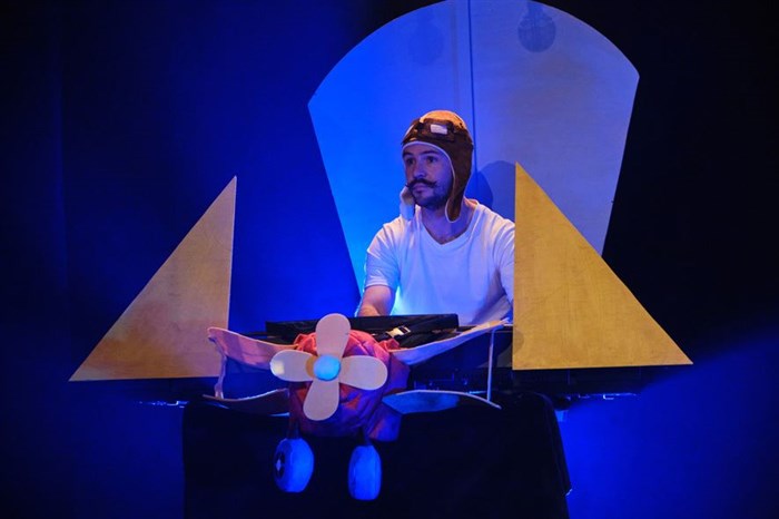 Et cette nuit-là, il décide qu'il est en 1632, qu'il s'appelle Robinson Crusoé, comme dans le livre, et que lui aussi fait des voyages sur des bateaux. Il nous embarque alors dans ce rêve dont on ne sait parfois plus bien si c'en est un. C'est alors une galerie de personnages tous plus attachants les uns que les autres qui font leur entrée dans ce songe : Lulibul - le gardien de ses rêves, il est la musique et même les lumières - Cochon, son doudou, et nous, le public.