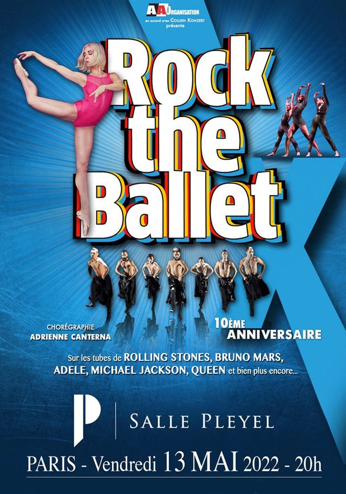 Depuis 10 ans, que ce soit avec "Rock the Ballet", "Rock the Ballet 2", un "Best of Rock The Ballet ", et plus récemment "Romeo & Juliet", ce genre original a attiré un million de fans avec plus de 800 représentations dans plus de 20 pays. Ce spectacle à succès, chorégraphié par Adrienne Canterna, revient en France pour une tournée anniversaire avec un programme inédit, intitulé - "Rock the Ballet X - 10ème anniversaire".