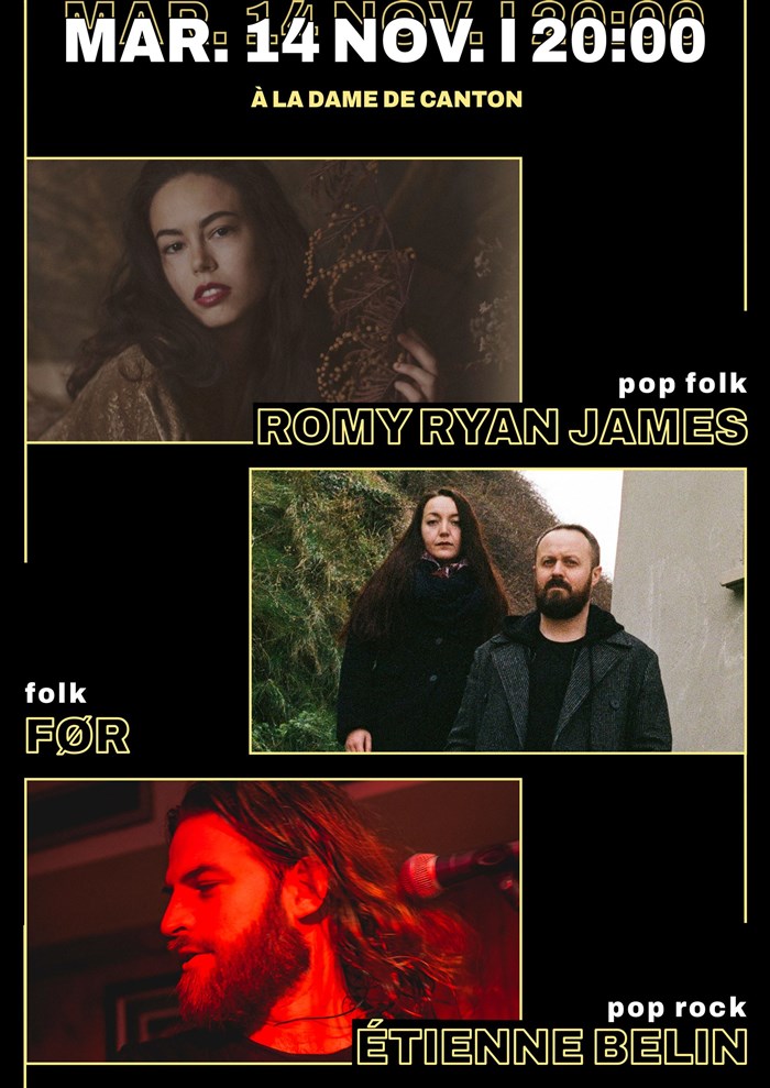 L’événement Romy Ryan James + FØR + Étienne Belin de type Pop / Rock / Folk, organisé ici :