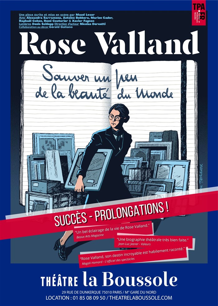 Rose Valland : sauver un peu de la beauté du monde, au theatre La Boussole, c'est très bien fait, [...] les décors bougent et changent , (les comédiens) ils jouent une quinzaine de personnages et sont excellents mais vraiment excellents et tout cela fait un très bon spectacles.