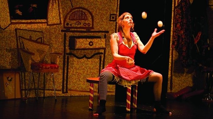 Duo surréaliste pour une comédienne jongleuse et un technicien bricoleur, un mélange de théâtre d'objets, de jonglerie et de magie.