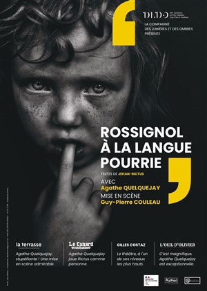 Seule en scène, dans un splendide écrin de mots, le jeu singulièrement lumineux d'Agathe Quelquejay restitue la substance des octosyllabes de Rictus. Incandescente et vibrante, elle offre à notre écoute une langue populaire haute en couleurs, fascinante invitation à revisiter le français d'aujourd'hui.