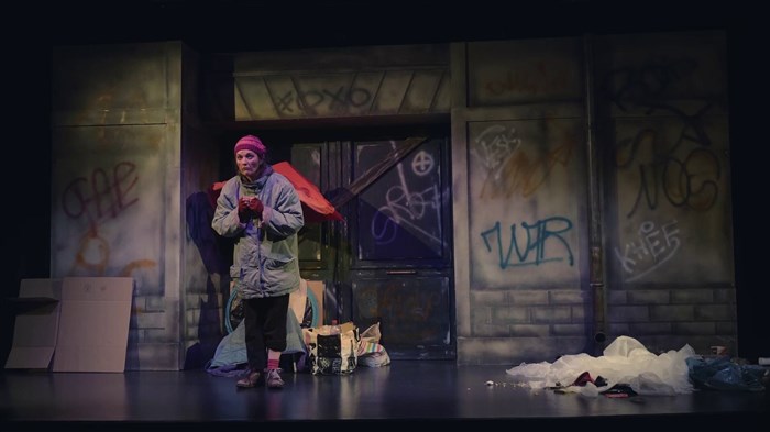 Une nuit, Rosy qui vit dans la rue, se pose enfin devant un immeuble désaffecté où les badauds passent encore un peu avant le soir.
