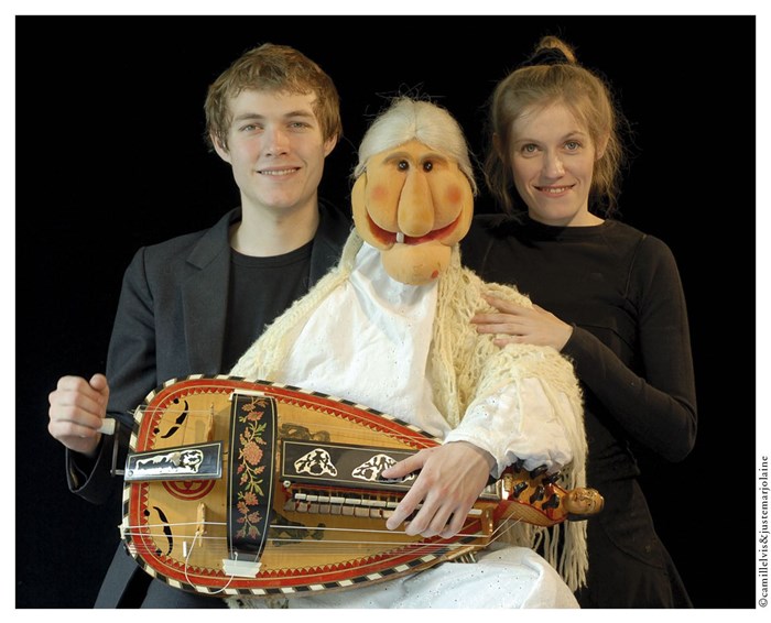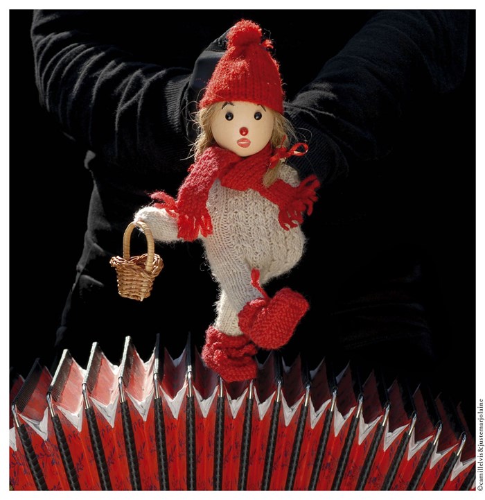 Un conte avec une galette, une poulette, trois cochons et un loup. Une comédie musicale avec accordéons, cuillères et vielle à roue.