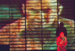Rouge décanté parvient ainsi à créer sur scène l'espace mental de cet homme, un homme morcelé, démultiplié par les caméras qui le filment au plus près, toile d'araignée dans laquelle il se débat. Il s'agit ici d'entrer physiquement dans sa mémoire, dans sa chambre intérieure.